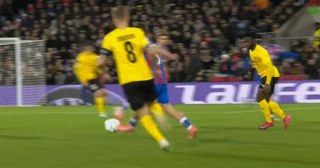 第5分钟,德文尼助攻,乌切内切后外脚背射门得分,水晶宫1-0古比斯